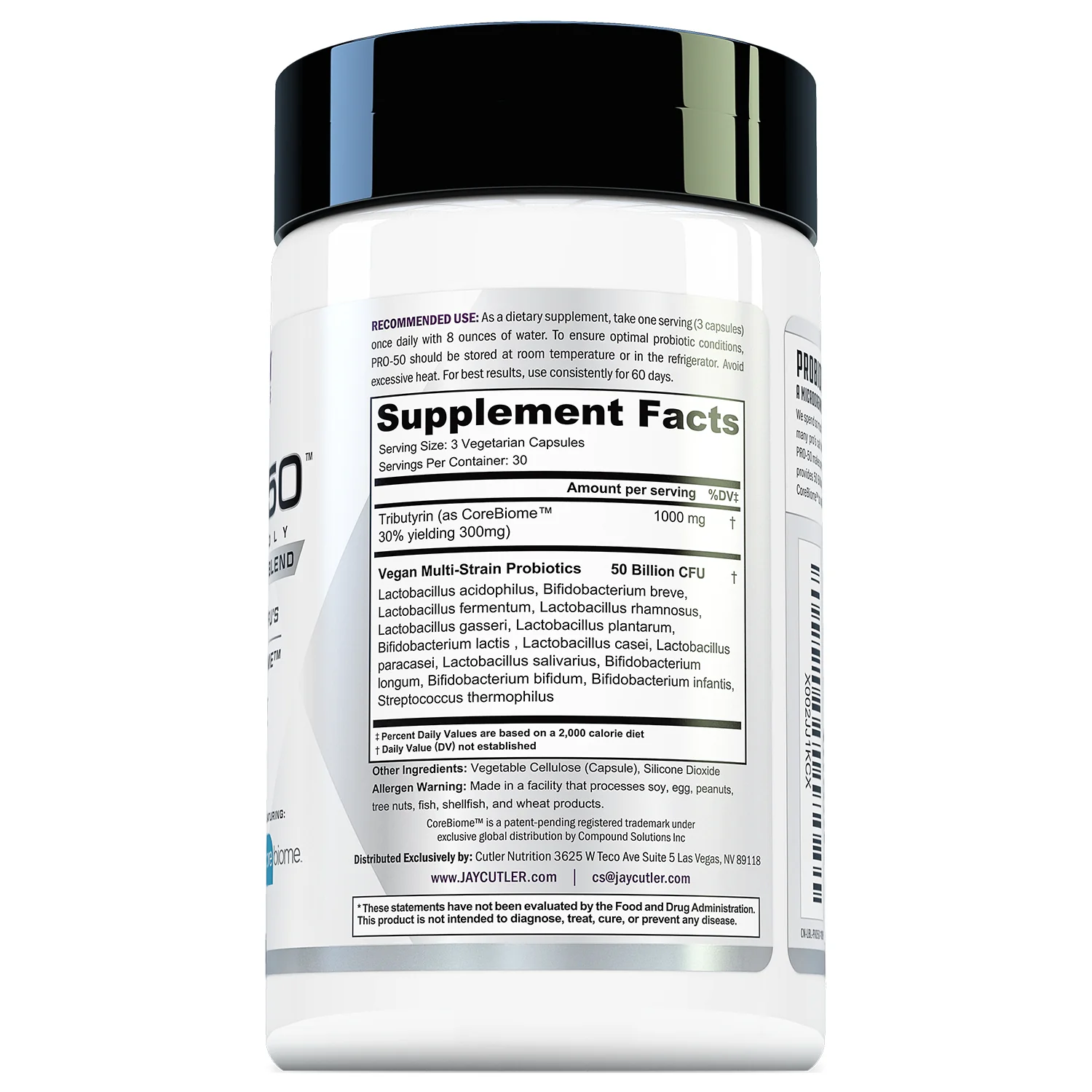 Each serving of Cutler Nutrition’s PROBIO-50 contains a new, cutting-edge ingredient that helps fuel and maximize the power of probiotics called CoreBiome™.